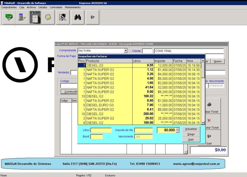 Herramienta que permite gestionar todas las áreas de la Estación: playa, minimercado y backoffice completo (clientes y proveedores, ventas, compras, proveedores, stock, cuentas corrientes, fondos).