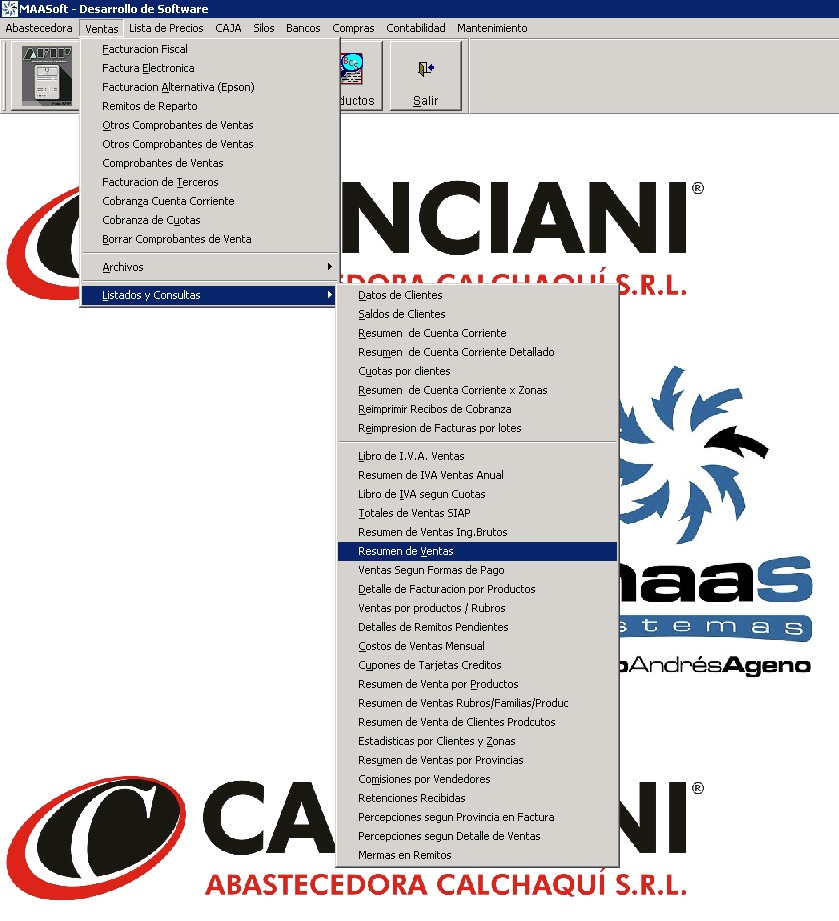 - Resumen de ventas rubros/familias/producto