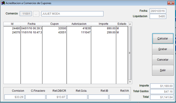 A los comercios se le acreditara el importe de los cupones recibidos las días estipulados por la entidad esto puede ser una vez a la semana, cada 15 días o solo una vez al mes, según lo crean conveniente. Este proceso se hace mediante la acreditación de cupones (acreditación a comercios) aquí solo se acreditan los cupones recibidos antes de la fecha estipulada